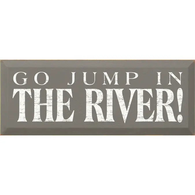 Add a bold statement to your space with the "Go Jump In The River" sign. Crafted to catch attention, this sign brings a playful yet assertive vibe to any room or outdoor area. Perfect for those who appreciate humor with a touch of edge, it’s a unique way to express personality and spark conversation. Durable and stylish, it’s an ideal accent for your home, office, or cabin retreat. Make your message clear and memorable with this standout piece.