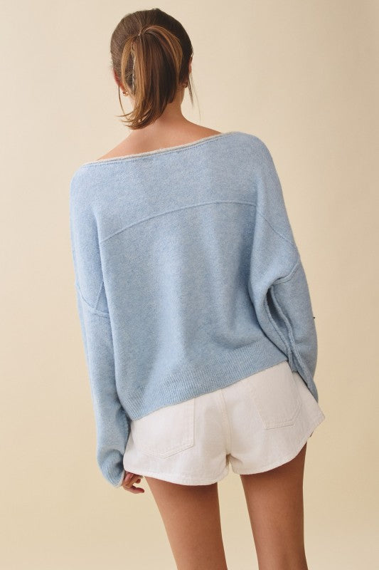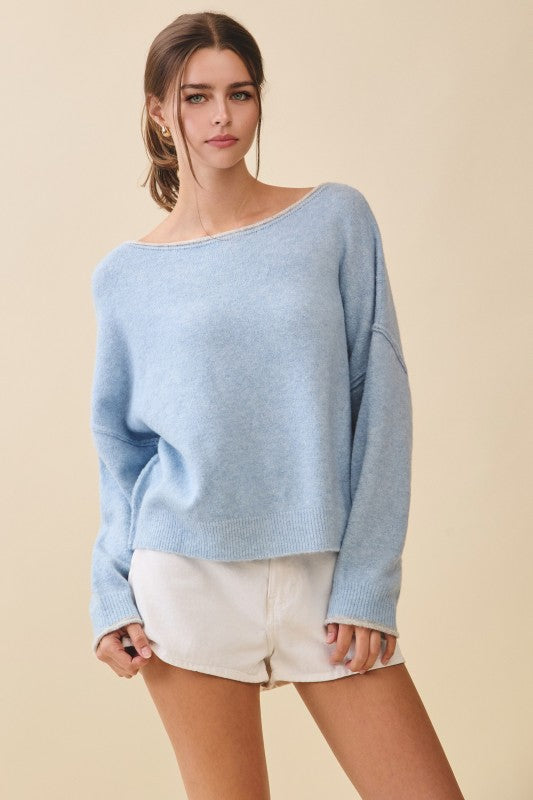 Drop Shoulder Fuzzy Baby Blue Sweater