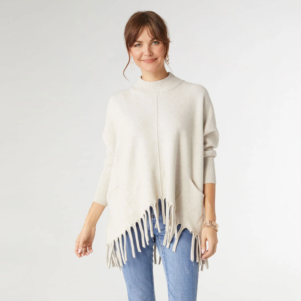 Elevate your wardrobe with the Luxe Flowy Mock Neck Fringe Sweater, blending timeless elegance with modern flair. Crafted for a graceful silhouette, its soft fabric and delicate fringe detailing add subtle movement and sophistication. Perfect for layering, this sweater effortlessly transitions from casual chic to refined comfort, making it a versatile staple for any discerning closet.
