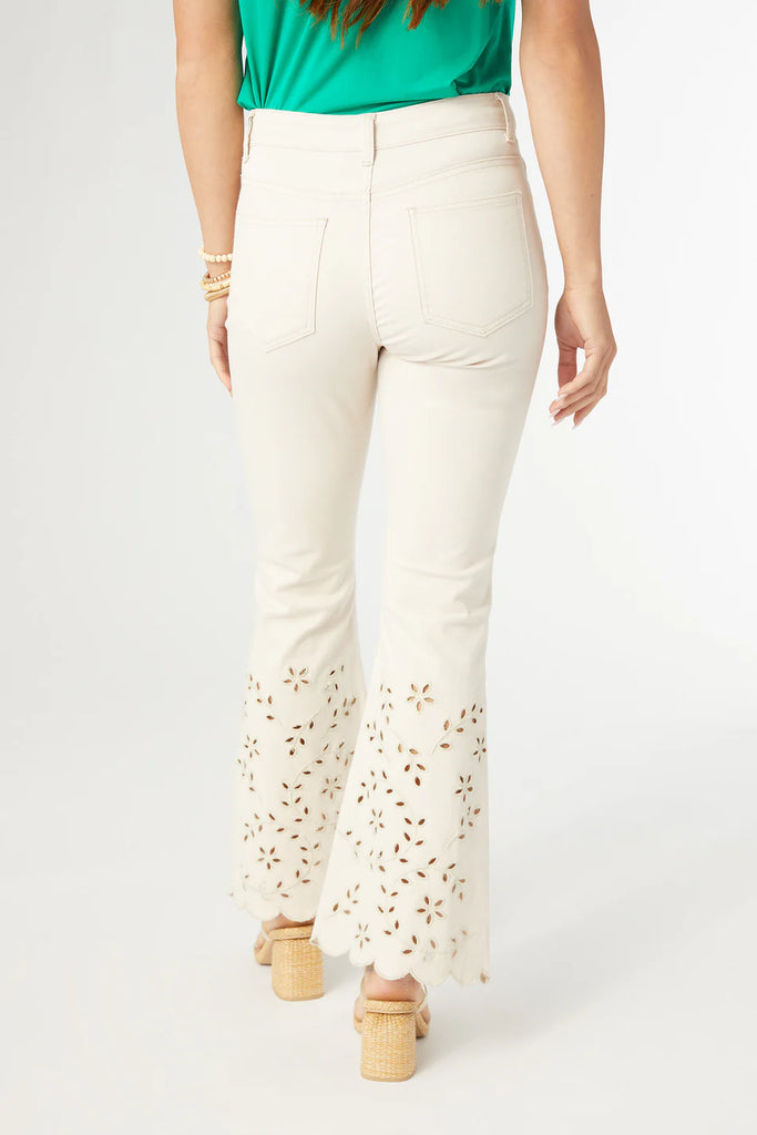 These charming jeans feature adorable cut-out flower details that add a whimsical touch to your everyday look. Perfect for anyone who loves mixing playful style with comfort, these jeans bring a fresh, botanical vibe to your wardrobe. The delicate floral cutouts create visual interest while maintaining the classic fit you love. Dress them up or down—they're versatile enough for casual outings or a fun night out with friends.